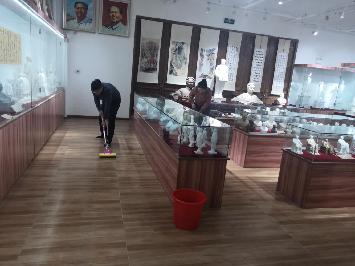 黨員們首先來(lái)到毛主席塑像收藏紀(jì)念館參觀學(xué)習(xí)。紀(jì)念館展示了上世紀(jì)五十年代初至七十年代末全國(guó)各地制作的毛主席塑像及瓷板畫、瓷擺件等各類藝術(shù)品,這些塑像品種繁多、質(zhì)地精美,惟妙惟肖地刻畫出偉人的精氣神。通過(guò)工作人員的介紹,黨員們了解了不同時(shí)期、不同造型毛主席塑像的故事和意義,也通過(guò)這些塑像更加深入地學(xué)習(xí)了黨史和新中國(guó)史。 塑像紀(jì)念館面積600平方米,藏品達(dá)6500件,由館主沈愛(ài)國(guó)老夫妻倆管理。他們每天都要接待前來(lái)參觀學(xué)習(xí)的黨員群眾,近期不少單位在此開(kāi)展主題活動(dòng),他們倆就更忙了,每天僅打掃衛(wèi)生就很不容易。國(guó)盛環(huán)境黨支部了解這一情況后,主動(dòng)組織黨員帶著拖把、水桶、抹布等到塑像館開(kāi)展志愿服務(wù)。黨員們有的打水,有的拖地,有的擦拭玻璃展柜,大家行動(dòng)迅速、認(rèn)真細(xì)致、井然有序。國(guó)盛環(huán)境黨支部也與沈愛(ài)國(guó)老人約定,今后館里有什么困難,可以隨時(shí)聯(lián)系國(guó)盛環(huán)境黨支部幫助解決。