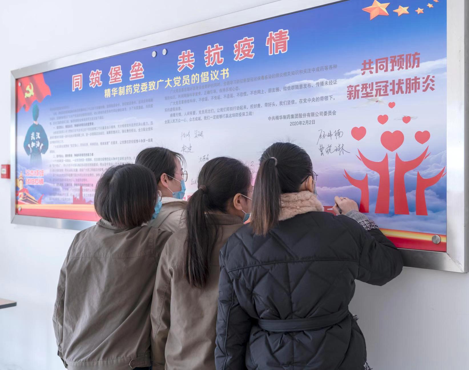 精華制藥黨委發(fā)出倡議書(shū)《同筑堡壘,共抗疫情》,倡議黨員同志擔(dān)好責(zé),帶好頭,萬(wàn)眾一心,眾志成城,以高度的思想覺(jué)悟和政治站位爭(zhēng)做科學(xué)防控疫情的宣貫者、助力者和踐行者。黨委領(lǐng)導(dǎo)高度重視疫情防控工作,職責(zé)分工明確,制度規(guī)范到位,行動(dòng)快速高效,一把手親自指揮、親自部署,各級(jí)黨員干部各級(jí)領(lǐng)導(dǎo)帶頭值班,沖在疫情防控第一線,組織黨員始終堅(jiān)守崗位,守護(hù)群眾生命安全和身體健康,以實(shí)際行動(dòng)踐行初心使命。除了做好自身防護(hù)工作和日常工作外,黨員同志們還紛紛要求主動(dòng)值班,堅(jiān)守崗位。黨員帶頭到生產(chǎn)車間一線參加正柴胡飲顆粒的包裝生產(chǎn),集團(tuán)公司科室全體人員也主動(dòng)加入到包裝正柴胡飲顆粒的工作中去。 為保障職工安全健康,精華制藥防控領(lǐng)導(dǎo)小組召開(kāi)專題會(huì)議,制定防控工作方案,通過(guò)微信群、電話等方式部署各項(xiàng)疫情防控工作。組織各職能部門(mén)、分公司、子公司負(fù)責(zé)人對(duì)單位員工情況進(jìn)行摸排調(diào)查。凡是有疫情較重地居住史或旅行史的人員,凡是與疫情較重地外來(lái)人員有密切接觸史的人員,凡是與疑似、確診病人有接觸的人員,凡是出現(xiàn)發(fā)燒、干咳等異常情況的人員,立即上報(bào)并自我隔離觀察。堅(jiān)決杜絕疫情的傳入與傳播,努力踐行一個(gè)國(guó)有企業(yè)的社會(huì)責(zé)任。