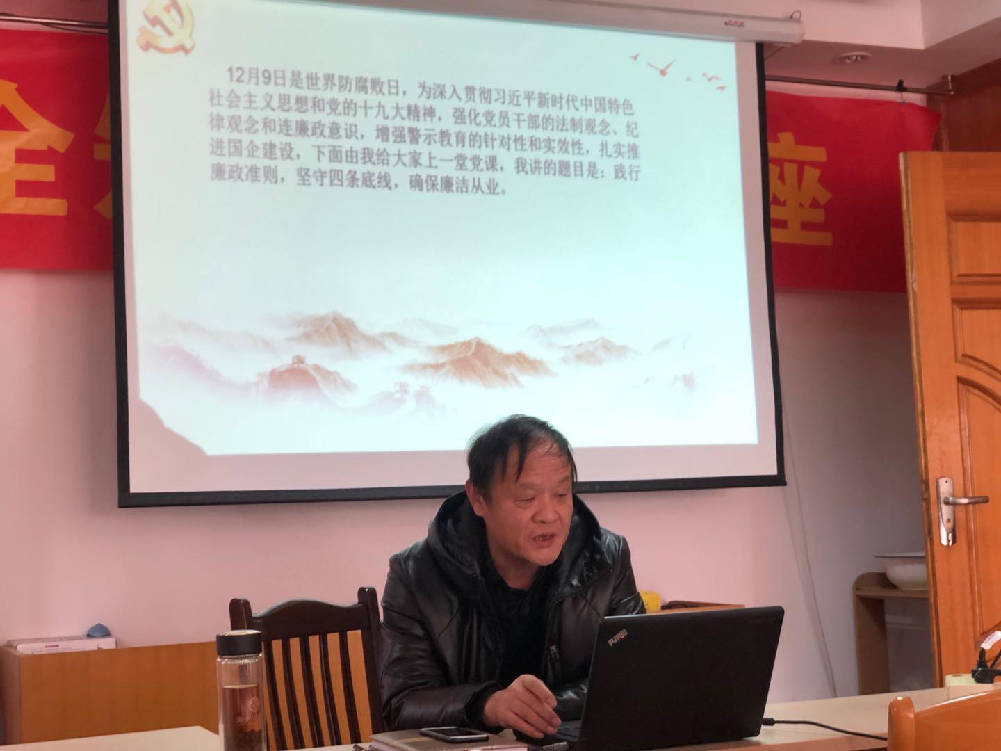 本次活動由黨支部書記劉志清主持會議,活動包括三項議程,首先由黨支部書記劉志清給全體黨員上黨課,課程重溫了《廉政準則》,警醒全體黨員樹立正確的人生觀、價值觀、世界觀,防微杜漸。提出了堅守四條底線,警示黨員干部堅決不做違法的事,一定不做違紀的事,拒絕去做誘惑的事,認真去做盡責的事。然后,通過觀看警示教育片,讓黨員干部吸取教訓,引以為戒。最后,召開專題組織生活會,圍繞警示教育專題進行了批評與自我批評。 劉志清書記給全體黨員提出了以下要求:一是正確對待權(quán)力,處理好權(quán)與法的關(guān)系、權(quán)與情的關(guān)系、權(quán)與義的關(guān)系、權(quán)與利的關(guān)系;二是要做到“四個不”,不失志、不失職、不失節(jié)、不失蹄,主動學習黨的路線方針、政策,增強理論知識的深入研究,按規(guī)矩辦事,管住自我、遵紀守法,拒腐防變,堅定共產(chǎn)主義理想信念不動搖。 本次警示專題活動,鞏固了我公司黨風廉政建設(shè)工作的良好局面,推動我公司黨風廉政建設(shè)和反腐敗工作取得新成效。 |