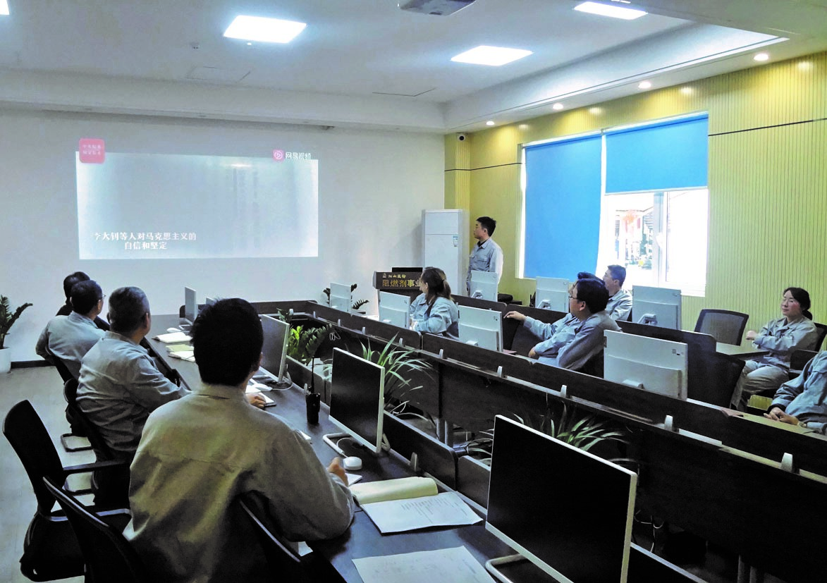 學(xué)以致用方為學(xué)。阻燃劑作為“江山”第三次創(chuàng)業(yè)的重點產(chǎn)業(yè),在此關(guān)鍵節(jié)點上,能否吹響勝利的號角至關(guān)重要。全體黨員將信念化為動力,有擔(dān)當(dāng),有斗志,擰成繩,抱成團,把工作做實做細,有力促進項目進展、積極拓展銷售市場。