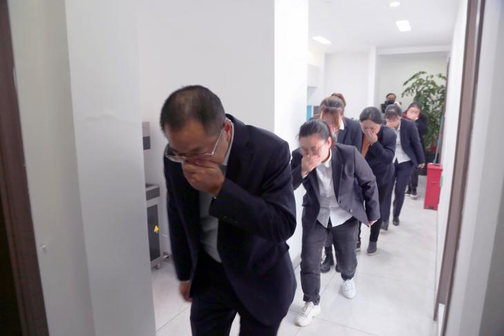 隨后公司組織全體員工進行了疏散演練,首先由公司安全員在6樓辦公區(qū)域發(fā)出火情報告,隨后黃色煙霧迅速彌漫整個辦公區(qū)域,根據(jù)應(yīng)急預(yù)案逃生指令,安全員通知各科室人員迅速撤離,各科室人員按照消防通道迅速撤離,從六樓辦公區(qū)域撤離到1樓安全區(qū)域,整個疏散演練耗時4分鐘,疏散演練成功告捷。