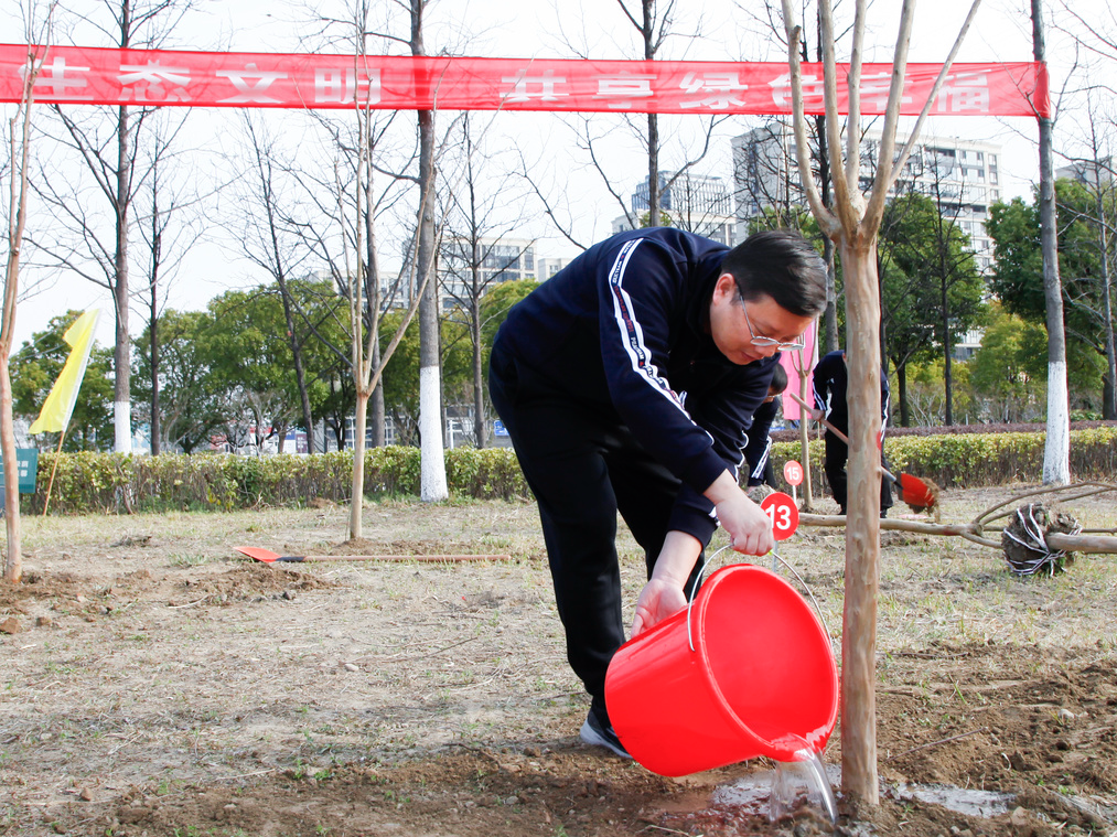 春風(fēng)和煦,萬(wàn)物萌生,在位于通呂運(yùn)河綠廊星島水岸段的植樹(shù)現(xiàn)場(chǎng),張劍橋董事長(zhǎng)、顧建國(guó)總經(jīng)理與集團(tuán)其他領(lǐng)導(dǎo)帶領(lǐng)大家一起熱火朝天地?fù)]鍬鏟土、扶苗填坑、培實(shí)新土、提水灌溉。大家熱情高漲、干勁十足、二三人一組、分工協(xié)作,共同種下50余棵紫薇樹(shù)苗,牢固樹(shù)立和踐行了“綠水青山就是金山銀山”的理念,為推進(jìn)新時(shí)代生態(tài)文明建設(shè)、建設(shè)美麗南通貢獻(xiàn)產(chǎn)控力量。