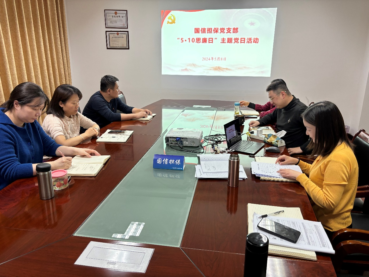 為深入貫徹習(xí)近平總書記關(guān)于黨的自我革命的重要思想,全面落實中央紀委三次全會和省、市紀委四次全會部署,根據(jù)產(chǎn)控集團活動部署要求,國信擔保公司黨支部于5月8日組織開展了“5·10”思廉日活動,公司全體黨員參加了會議,群眾列席了會議。