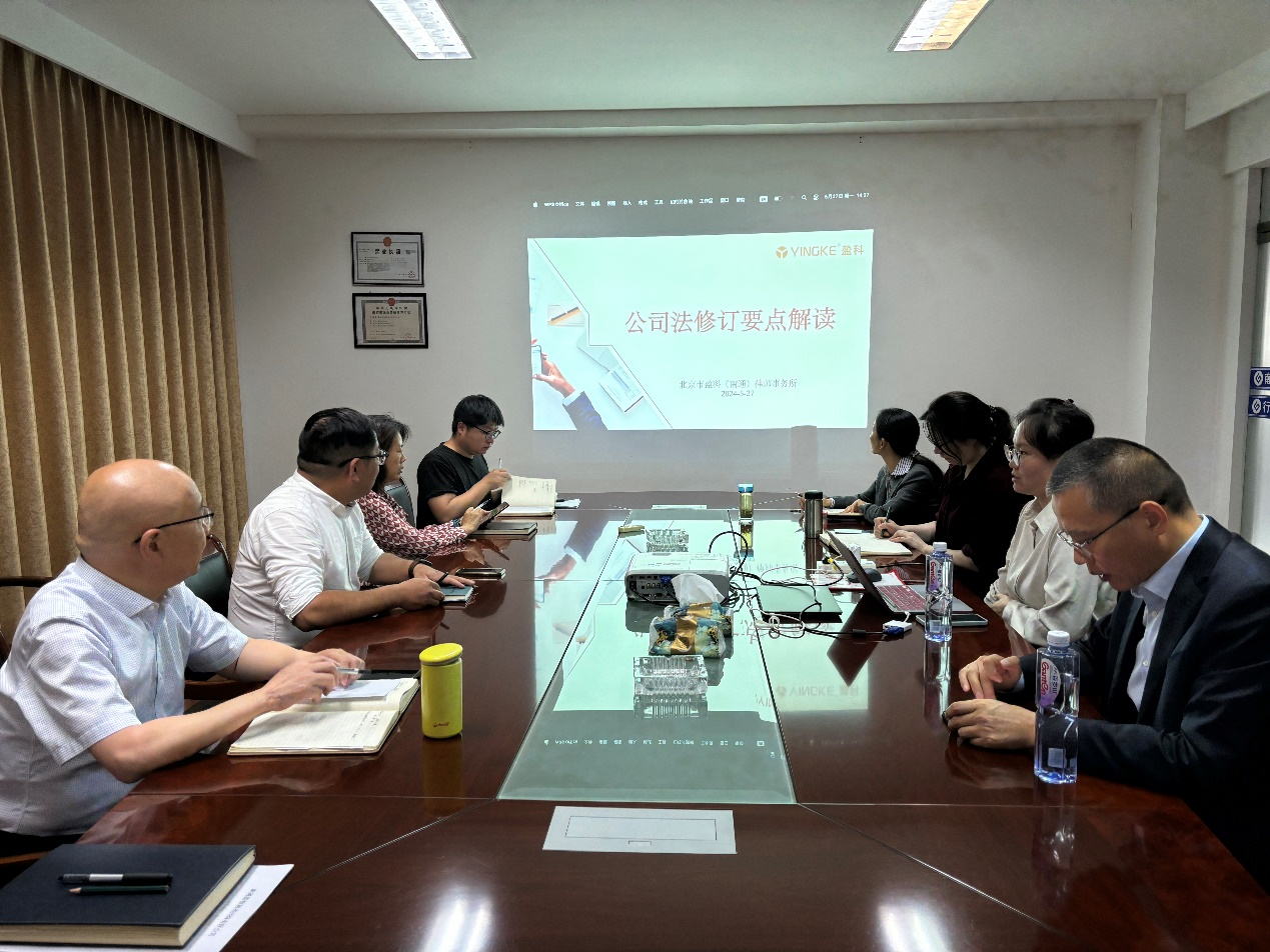 為進一步提高依法治企能力,增強公司員工的法律意識,精準把握和主動適應(yīng)新《公司法》,推進公司合規(guī)經(jīng)營管理工作邁上新臺階,公司于5月27日下午組織開展了《公司法修訂要點解讀》培訓(xùn)活動,公司全體員工參加了培訓(xùn)活動。 公司法律顧問單位盈科律師事務(wù)所汪秋語律師為主講人,從公司法的修訂歷程、總則部分修訂要點、有限責任公司的修訂內(nèi)容等幾個方面進行了詳細講解,并就大家現(xiàn)場提出的問題進行了深入的交流。 通過此次培訓(xùn)活動,促進了公司干部職工對新《公司法》的深入理解,加深了員工對公司治理及管理要求的理解和認識,為今后工作中更好的防范法律風(fēng)險,保障公司利益,推動公司穩(wěn)步發(fā)展起到了重要的作用。