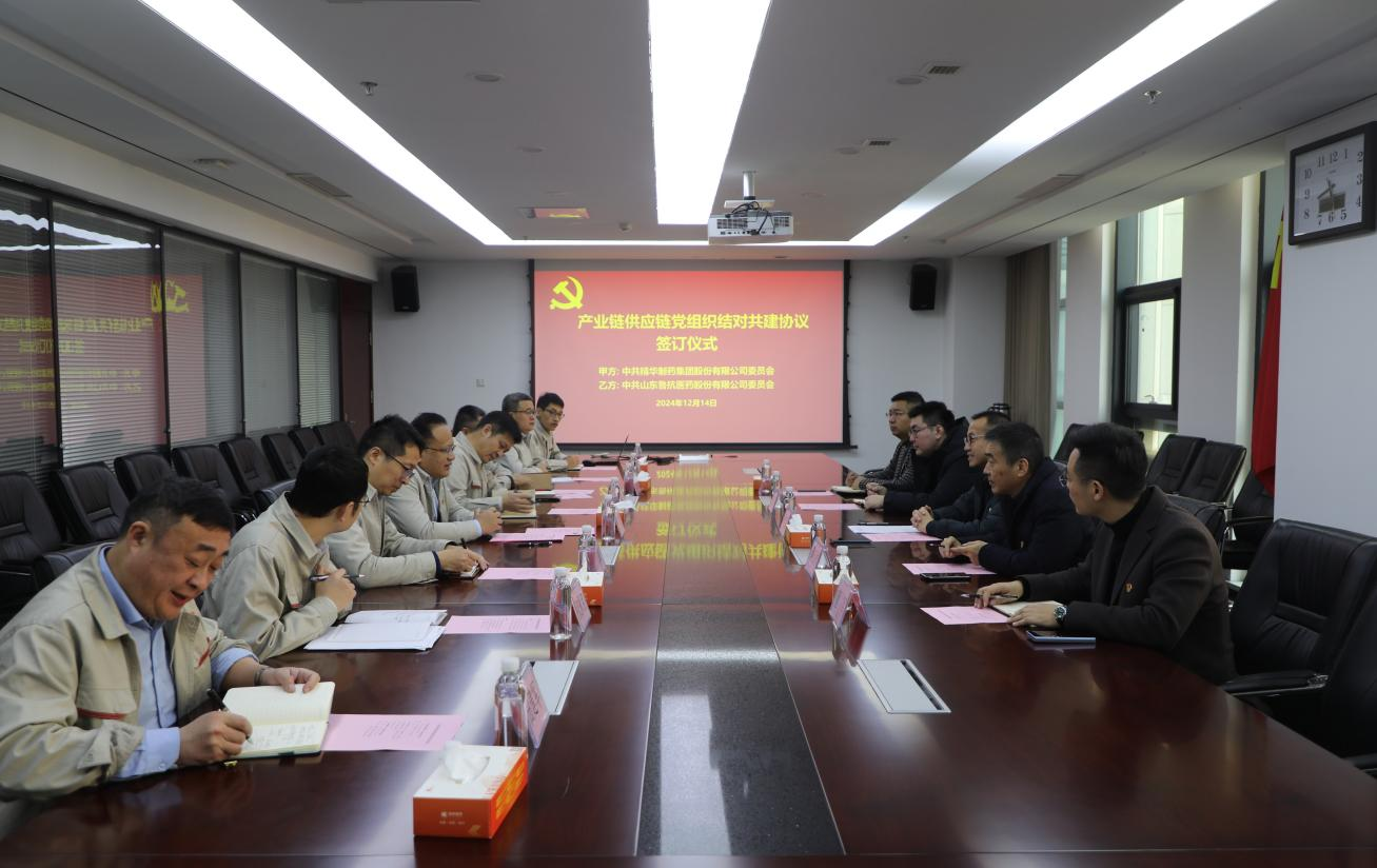 為進一步學(xué)習(xí)貫徹黨的二十屆三中全會精神,創(chuàng)新黨建工作,以“黨建內(nèi)鏈”驅(qū)動“產(chǎn)業(yè)外鏈”,不斷激發(fā)基層黨建活力,形成優(yōu)勢互補、資源共享,共同提高、合作共贏的黨建工作格局,經(jīng)前期溝通,受魯抗醫(yī)藥邀請,12月14日,精華制藥集團股份有限公司黨委書記、董事長尹紅宇、集團副董事長、江蘇森萱醫(yī)藥股份有限公司董事長吳玉祥等一行5人赴山東魯抗醫(yī)藥股份有限公司開展黨建共建活動。