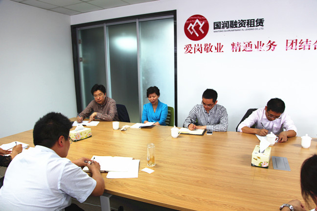 5月14日上午,市國(guó)資委監(jiān)事會(huì)主席凌美娟一行2人來(lái)到南通國(guó)潤(rùn)融資租賃有限公司,聯(lián)合產(chǎn)控集團(tuán)審計(jì)監(jiān)察部對(duì)國(guó)潤(rùn)租賃公司內(nèi)控制度建立和執(zhí)行情況開(kāi)展審計(jì)督導(dǎo)。產(chǎn)控集團(tuán)紀(jì)委書(shū)記、國(guó)潤(rùn)公司董事黃培豐、副總經(jīng)理劉正午陪同督導(dǎo)。